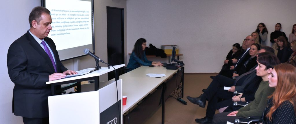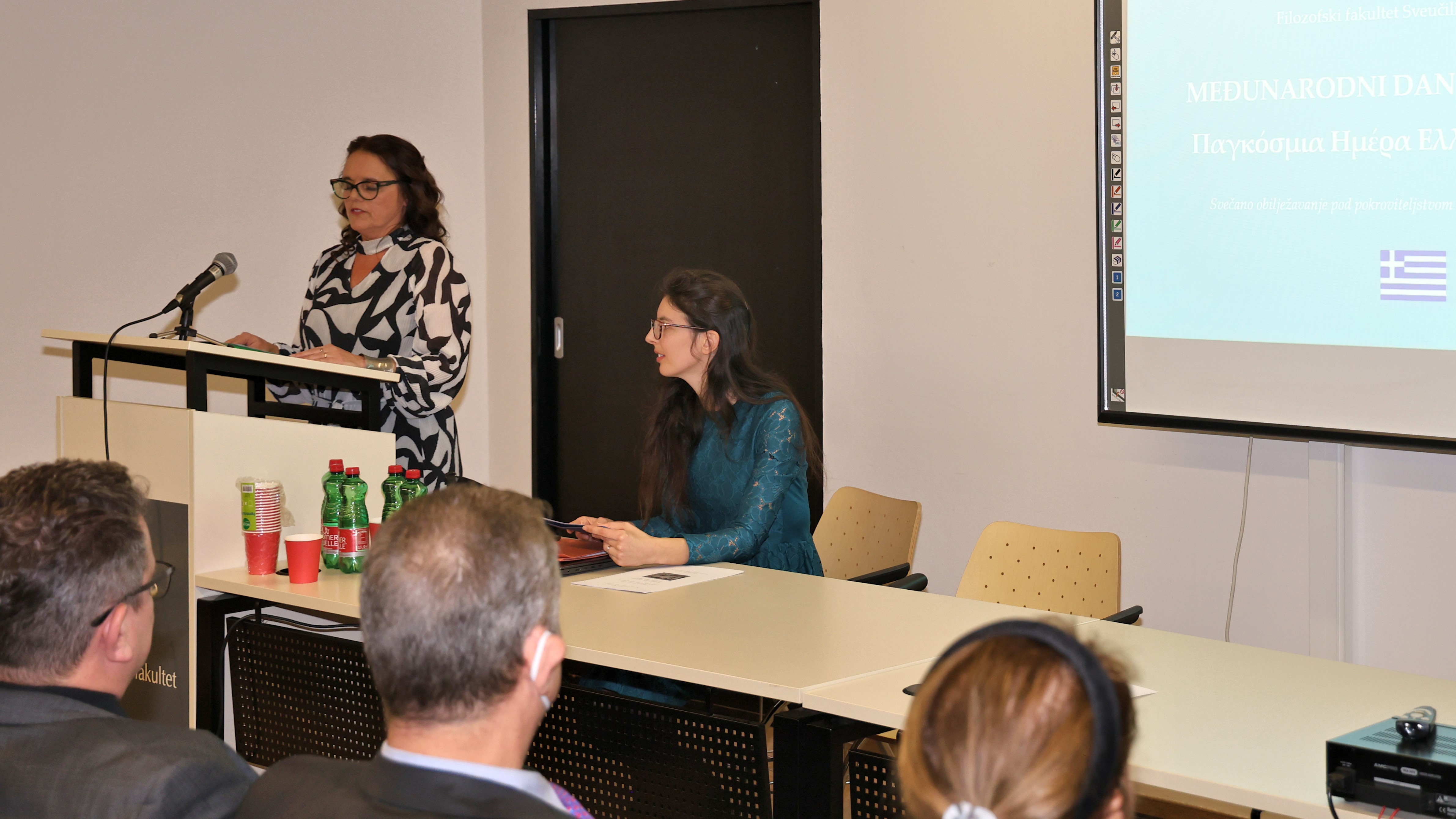 Odsjek za klasičnu filologiju u suradnji s Veleposlanstvom Helenske Republike 5. veljače 2026. svečano je obilježio Međunarodni dan grčkog jezika. Na Filozofskom fakultetu u Zagrebu održana je prigodna manifestacija pod nazivom „Grčka mitologija kao poveznica među kulturama“. Okupljene su pozdravili izv. prof. dr. sc. Tamara Tvrtković u ime Odsjeka, te dekan Filozofskog fakulteta prof. dr. sc. Domagoj Tončinić i veleposlanik Helenske Republike Njegova Ekscelencija Athanassios Paresoglou. Svi su istaknuli važnost učenja grčkog jezika te utjecaj grčke civilizacije na europsku kulturu. Na njih su se nadovezale doc. dr. sc. Petra Matović i doc. dr. sc. Ana Pavlović s izlaganjem „Grčka mitologija u hrvatskom stripu“ u kojem su se posebno osvrnule na strip Jazon i Argonauti u izdanju Lošinjskog muzeja (2022.). Studentice Vjekoslava Margetić, Genevieve Elise Pavić i Katarina Radić pročitale su na grčkom, novogrčkom i hrvatskom odabrane književne odlomke važne za poznavanje mita o Argonautima, a profesorica Tvrtković pročitala je odlomak iz romana Argonauti Slavka Batušića. Program je završio izlaganjem studenata Damiana Čizmeka i Barbare Rismondo, koji su s okupljenima podijelili dojmove s prošlogodišnje ljetne stipendije Helenske Republike za učenje novogrčkog jezika u Joanini i s terenske nastave Odsjeka za klasičnu filologiju.