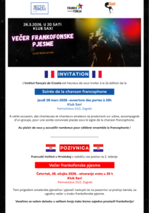 Pozivamo sve frankofonce i ljubitelje francuskog jezika na radionicu pisanja biografske pjesme s kanadskom spisateljicom Aimée Lévesque 25.03.2026. u 18h u učionicu A107.