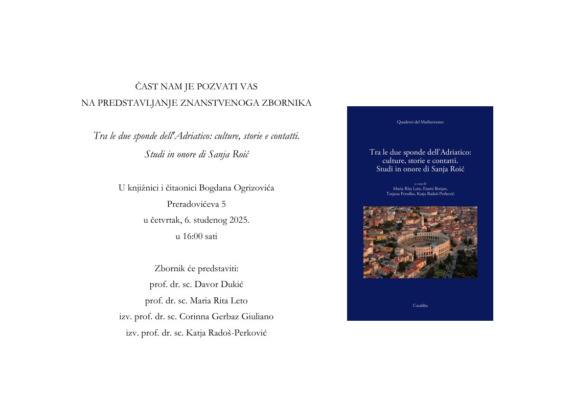 Predstavljanje zbornika – Tra le due sponde dell’Adriatico: culture, storie e contatti. Studi in onore di Sanja Roić